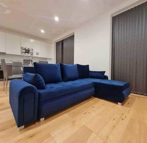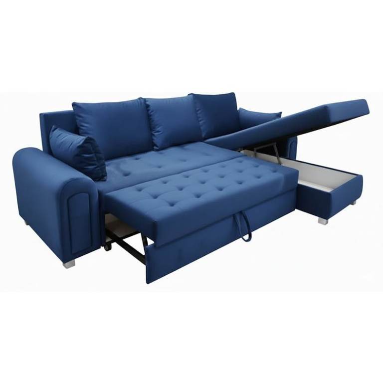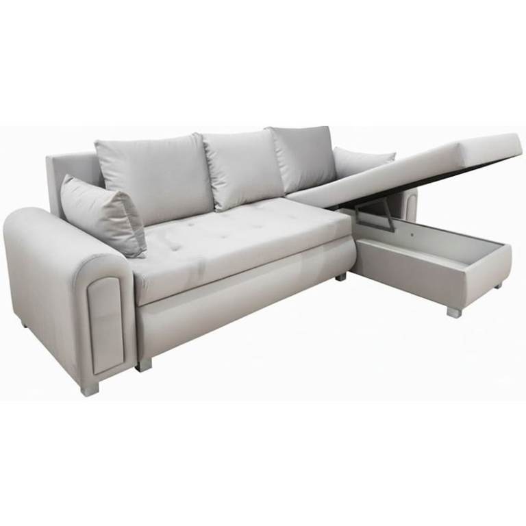 Crafted in Europe with a solid wood frame and premium materials. This contemporary corner sofa bed looks great in a modern interior. Striking a perfect balance between comfort and durability, this corner unit is comfortable as both a sofa and a bed. The sofa has enough storage to put away the pillows/cushions and throws/blankets.