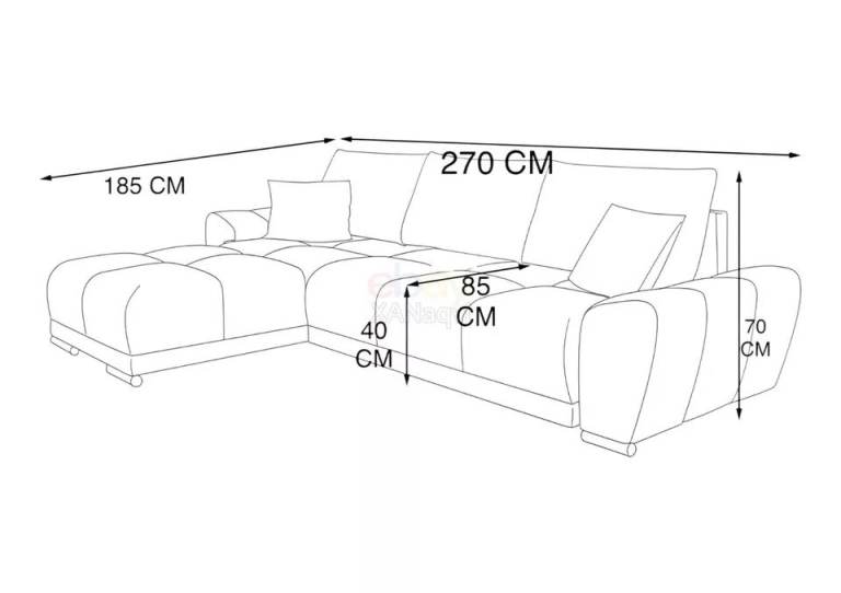 - Sofa dimensions: - W 270 cm×185 cm × H 70 cm × D 92 cm