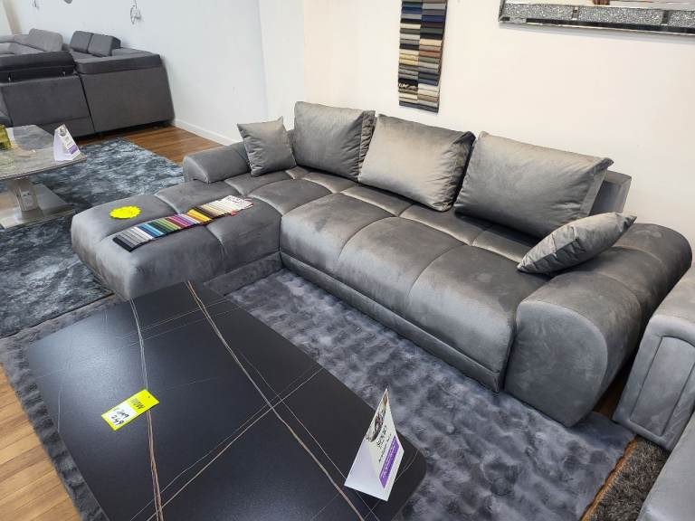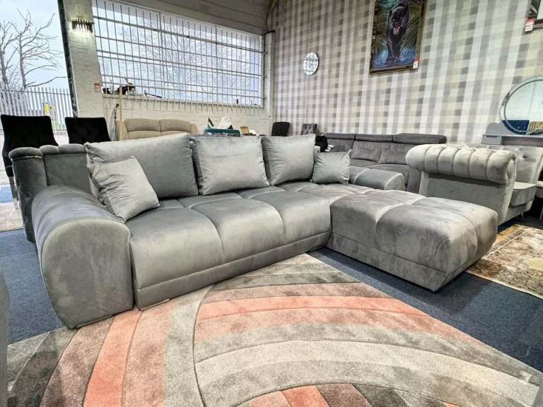CASH ON DELIVERY - Enzo Thick & Extra Comfy Corner Sofa Bed With Storage (Grey)