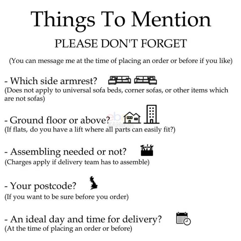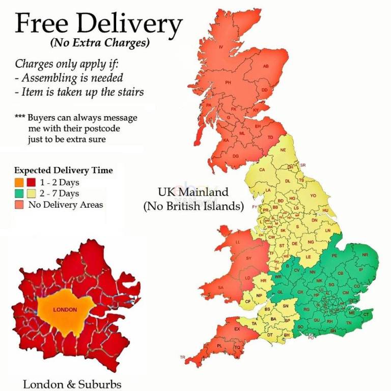 ✳ No extra charges for ground floor but if it is a building and there are no lifts big enough to take parts of the sofa bed to your flat (and the stairs are used), it will be £10 per floor. Again, it can be paid in cash at time of delivery