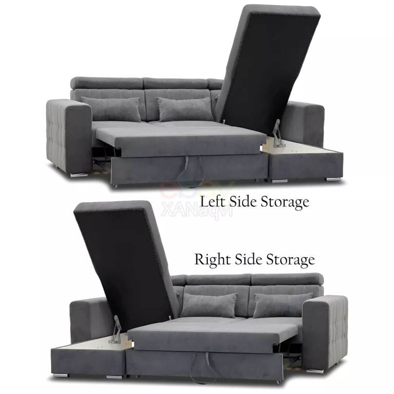 CASH ON DELIVERY - Luca Vesper Fabric Universal Corner Sofa Bed With Storage (Dark Grey)
