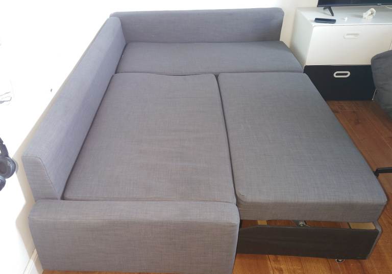 I have for sale good condition corner sofa bed with 5 back cushions included,dimensions given in the attached photos,smoking free and pets free home. You can place the chaise longue section to the left or right of the sofa, and switch whenever you like., can't deliver only paid with cash,£120
