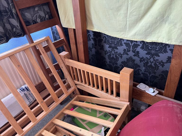 Solid wood double futon from the futon company no veneer not sure if it’s oak or beech heavy will need two people to collect. reduced to £75 for a quick sale