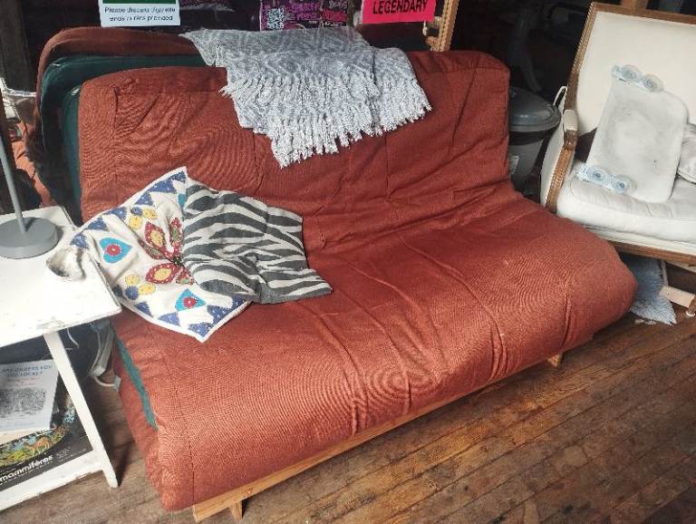 Posting for 1+ monthsFold out sofa bed, retro cover.