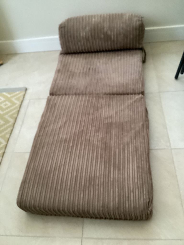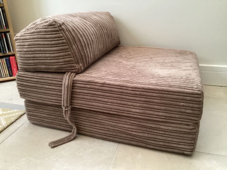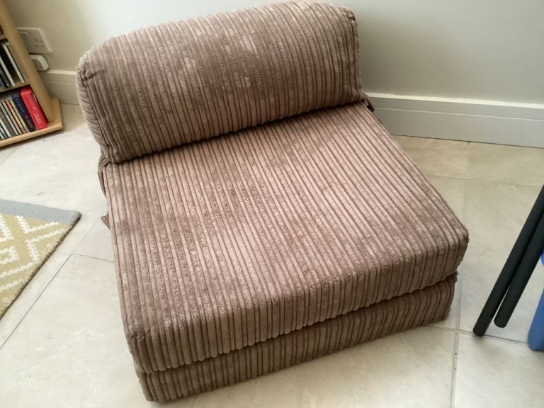 Folding beige corduroy chair bed.