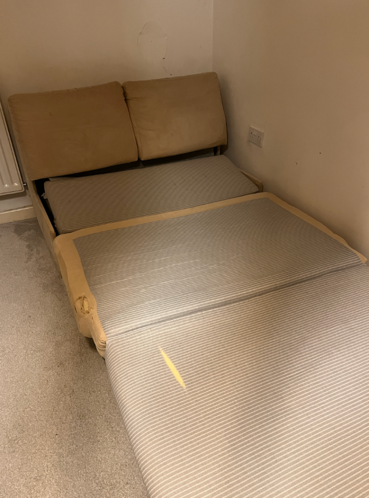 Sofa opens out into a small double.