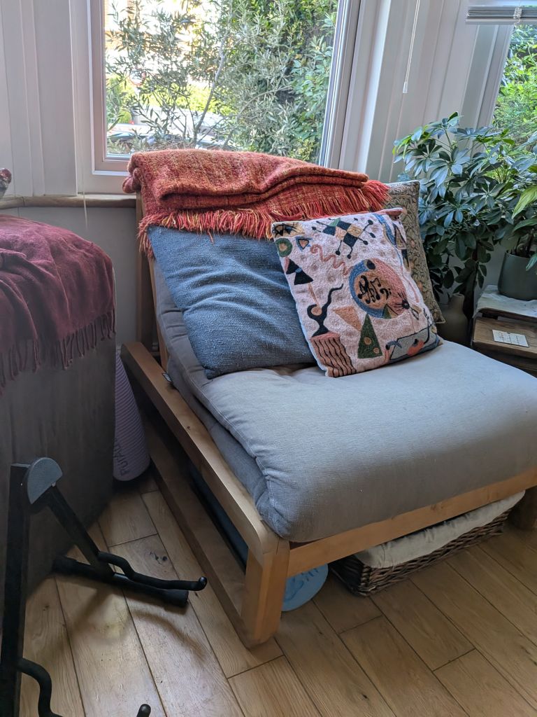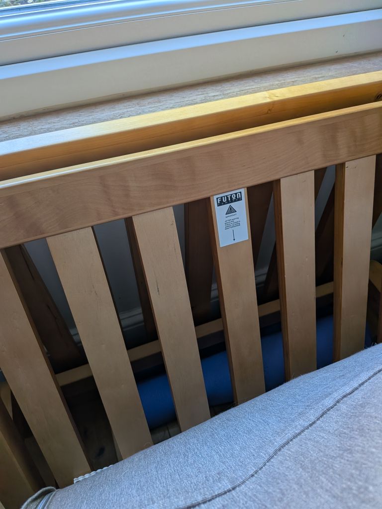 This is a used Futon Company single futon sofa bed. More information as well as detailed specifications can be found on the official website.