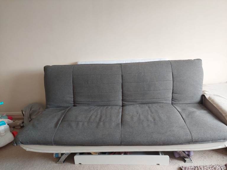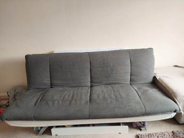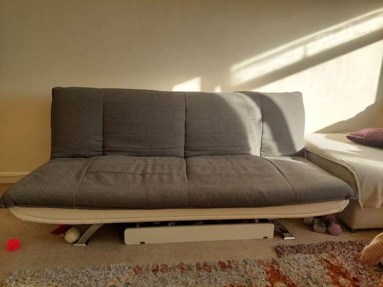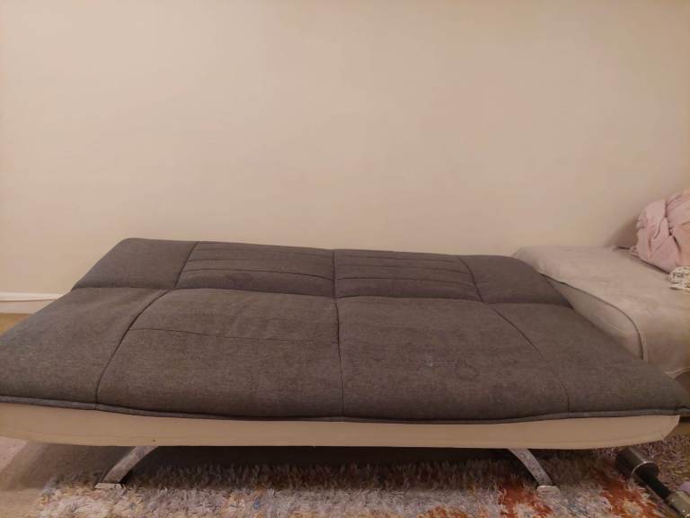 This Grey / White Sofa Bed can be used both as a Sofa ( 3 seater ) and bed. Solid steel legs. 6 feet long ( 72 inches ) x 4 feet wide ( 48 inches ). Selling only because we bought a bigger sofa and need more space in the room. There are some water stains but can be cleaned easily. Collection only from SM2. Please make your own arrangements for collection.