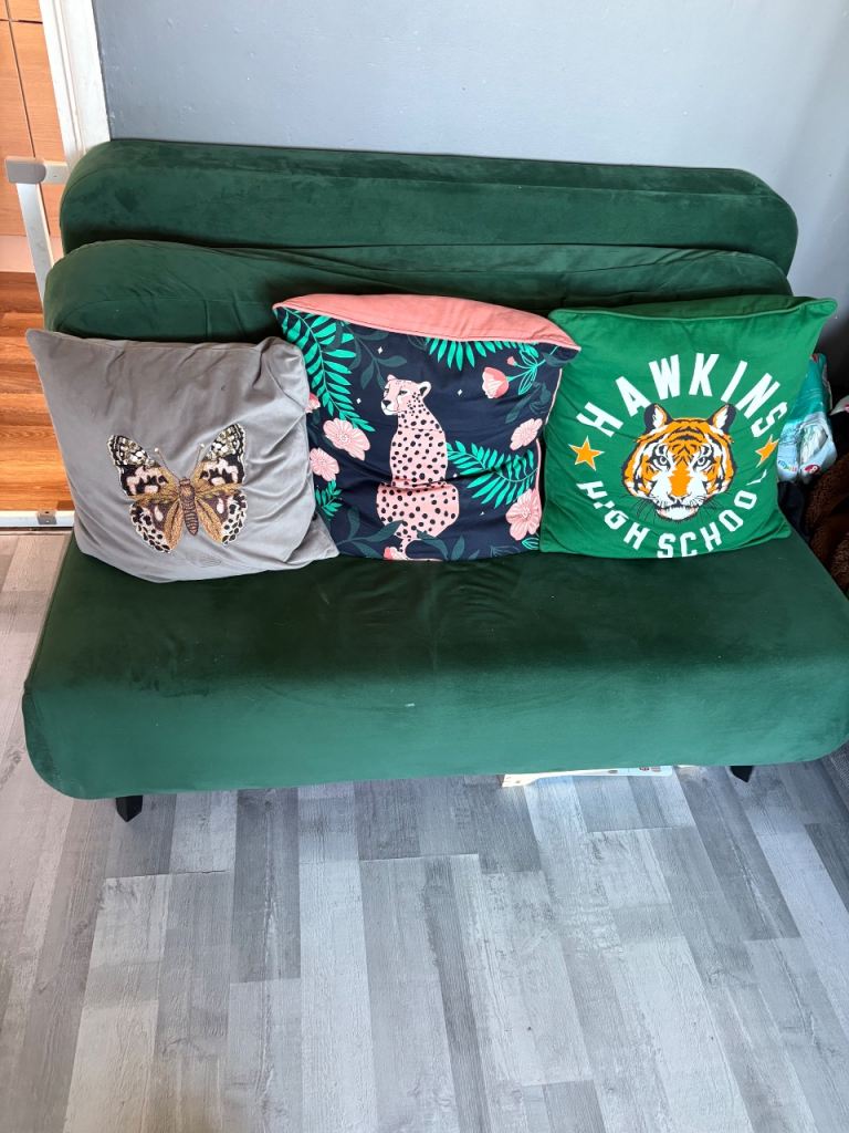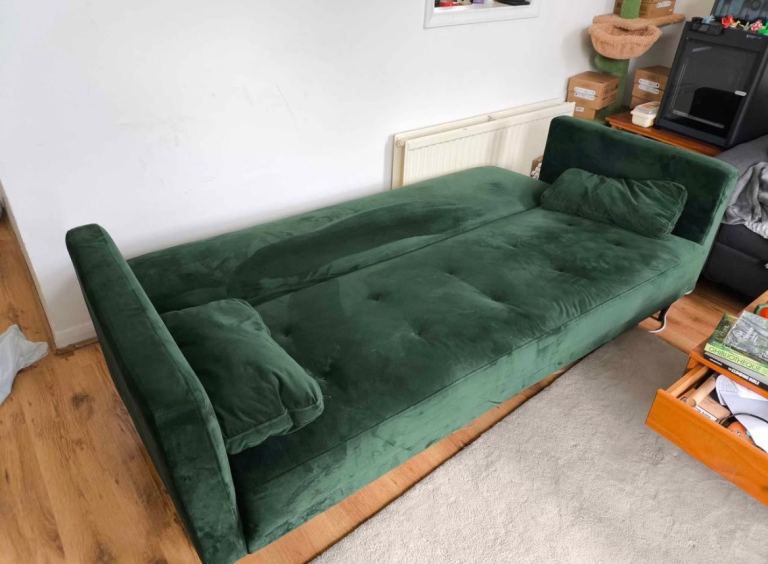 Sad to see this one go, but I am moving! Selling a velvet green sofa, that folds out to a comfy bed. Fully functional and collection from NW26JH :)