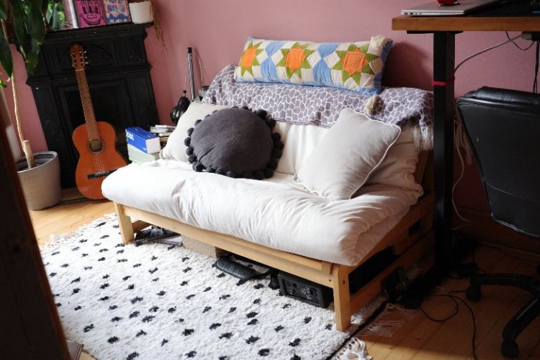 As a futon: 110x205cm