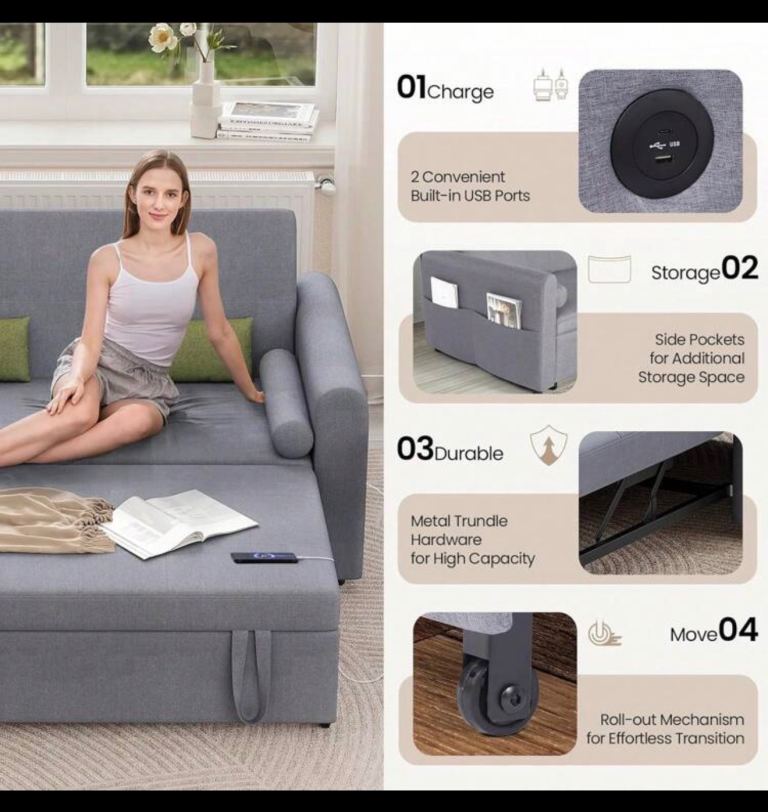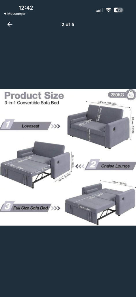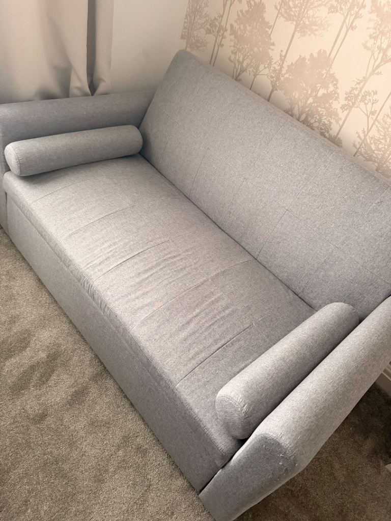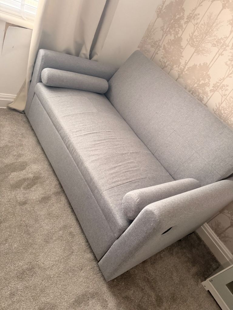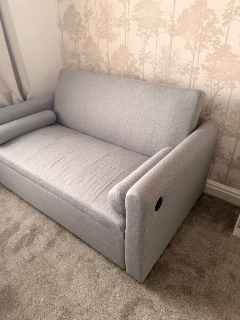 Barely used grey sofa bed with usb port got for my spare room only been slept on a few times.