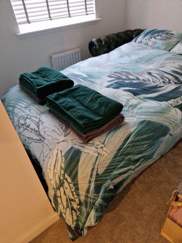 Handmade 3 seater green leather Chesterfield sofa bed. Pulls out into a double bed. A couple of scratches but otherwise in almost perfect condition.