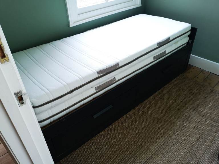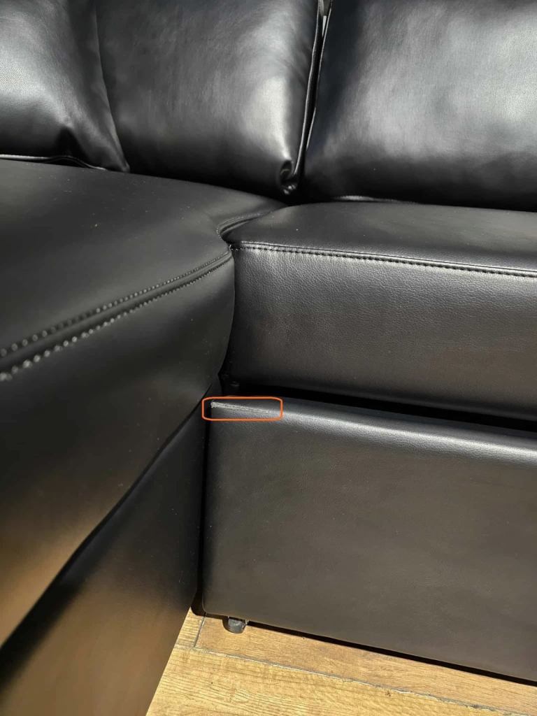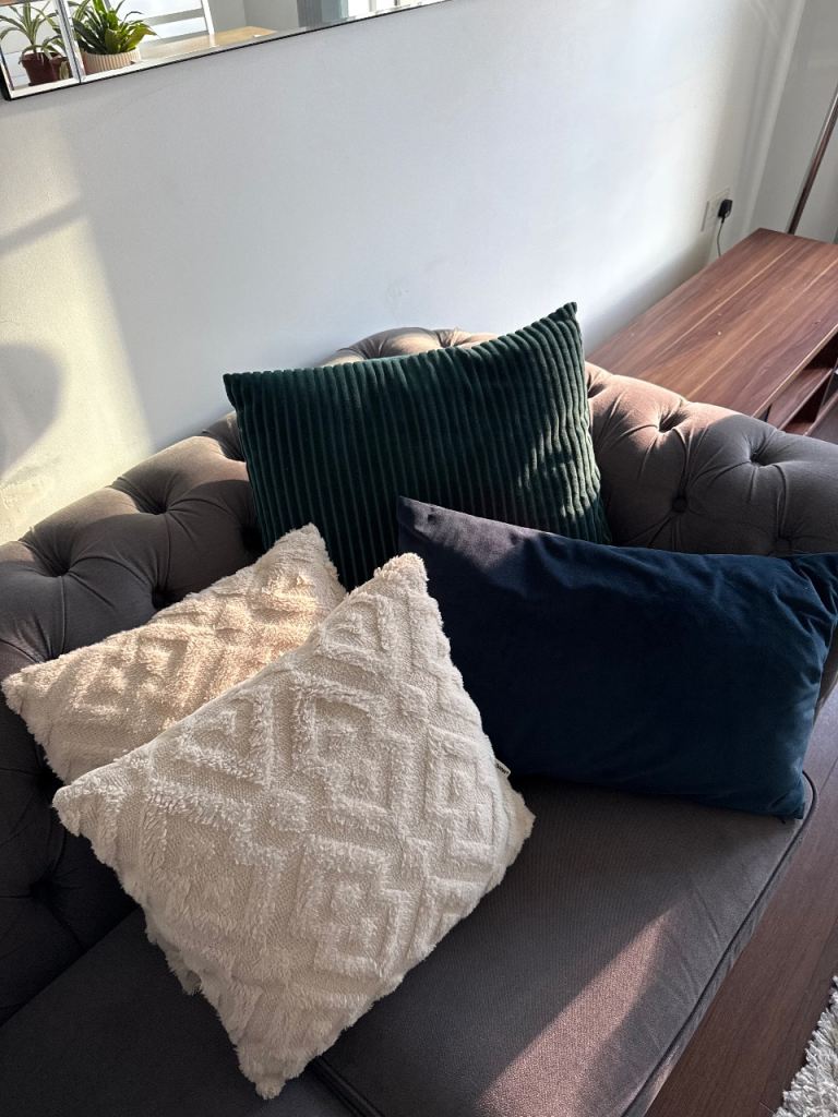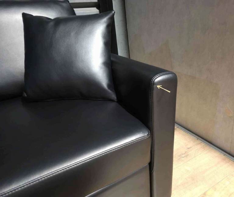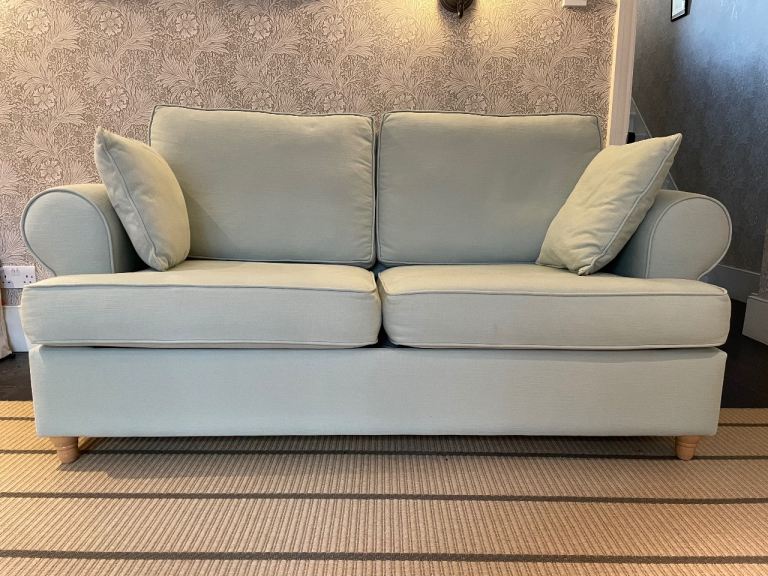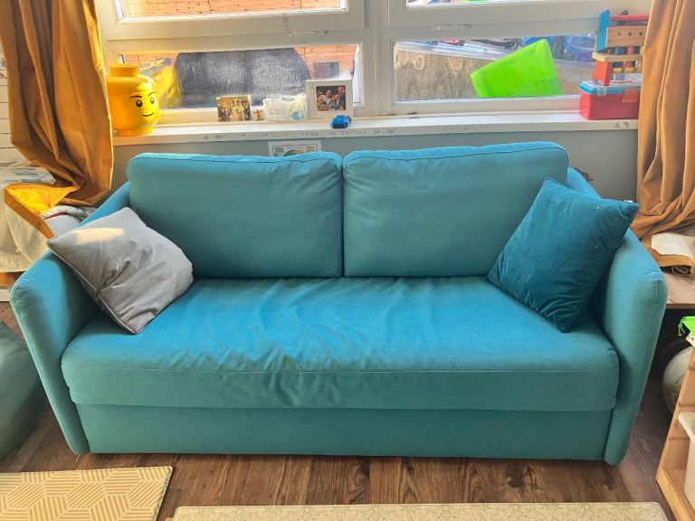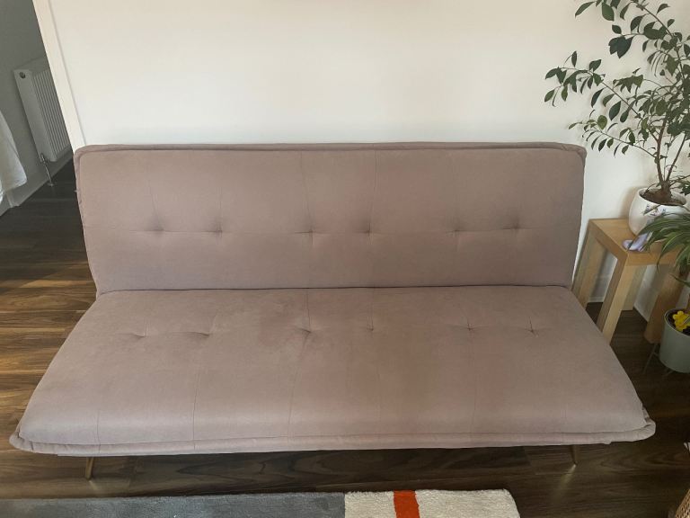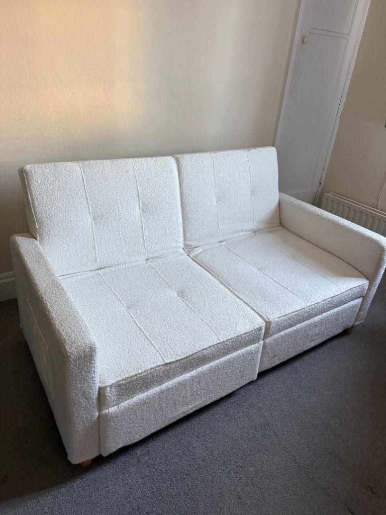 Only few days old. Still as new. Transport damaged. Has few bruises. The worst shown in photos. One on the bed frame. Won't be noticeable when pushed in. Also another little one on the arm. Otherwise still new sofa for less than half price. Was in smoke free home.