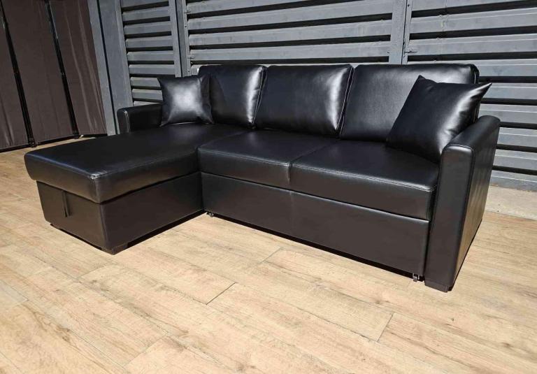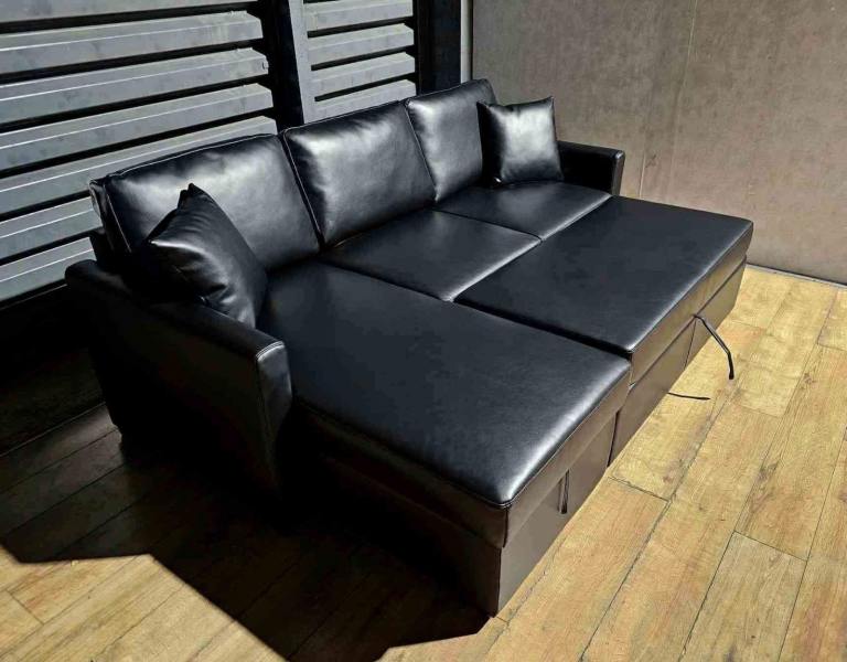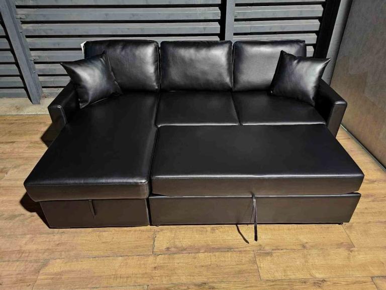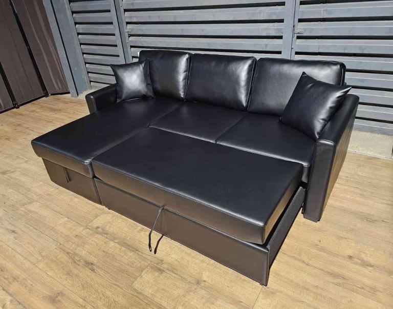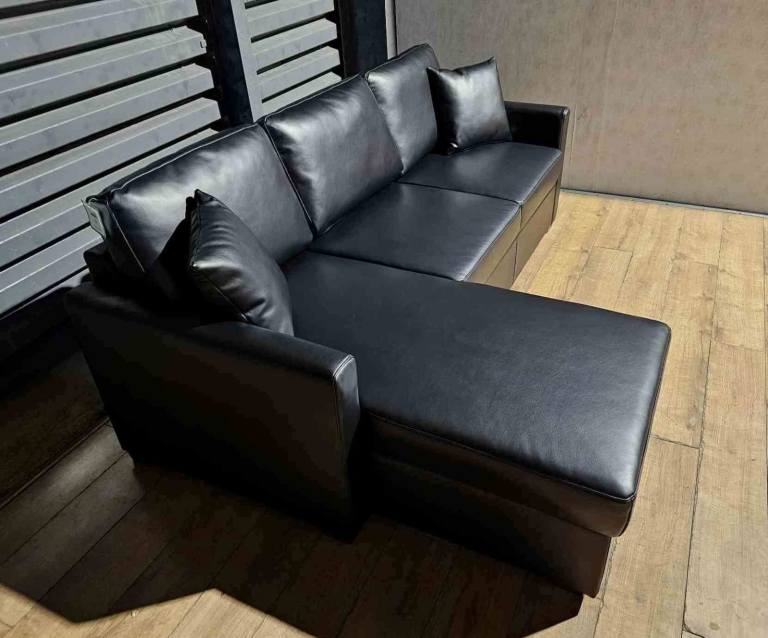 Hardly Used Corner Sofa Bed - Black.