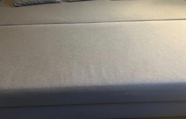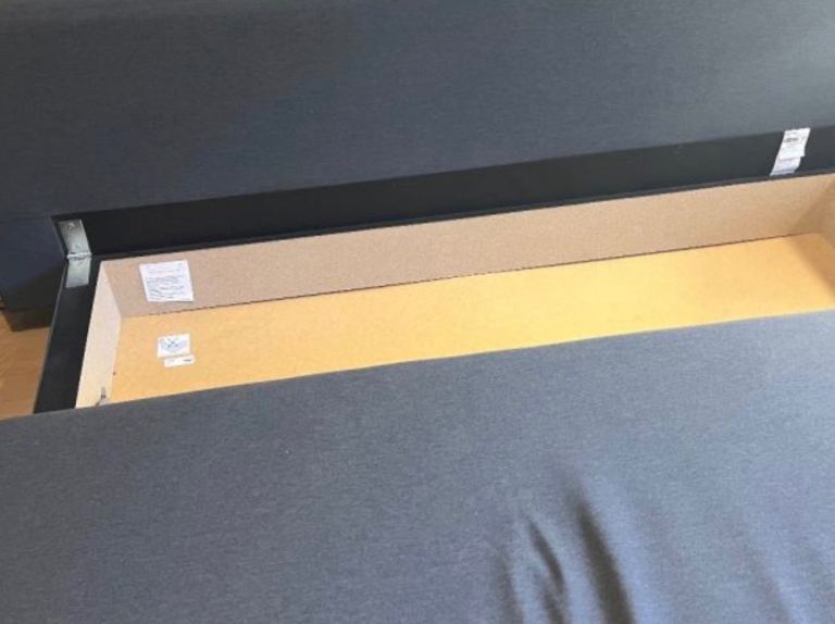 Sofa bed from IKEA, it converts into a double bed and has built-in storage.