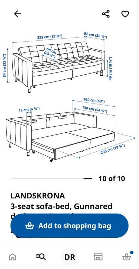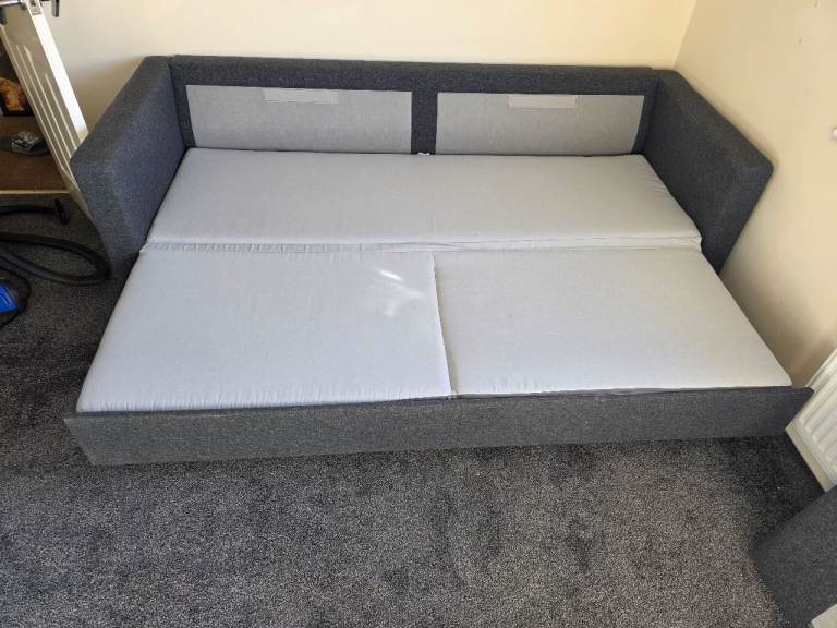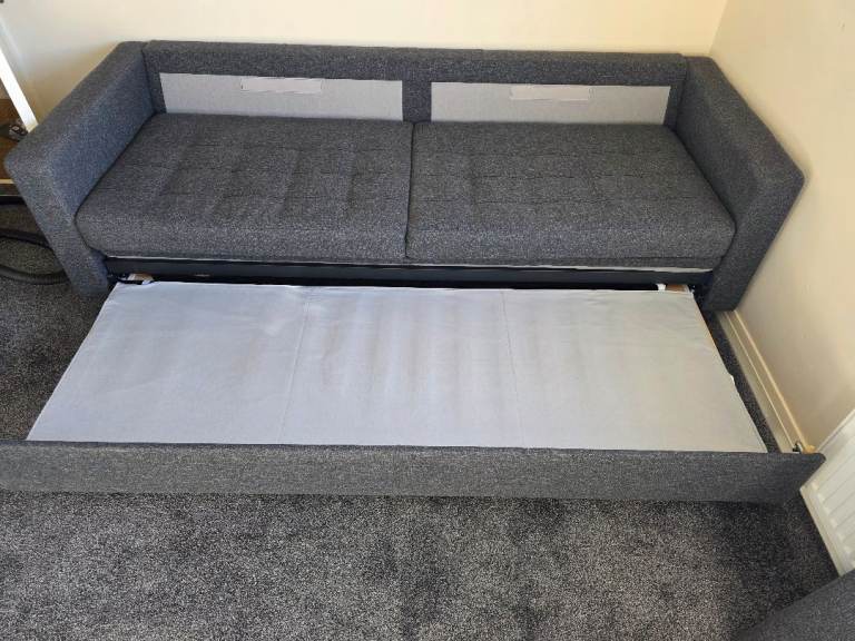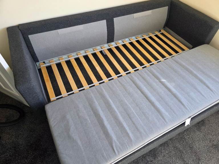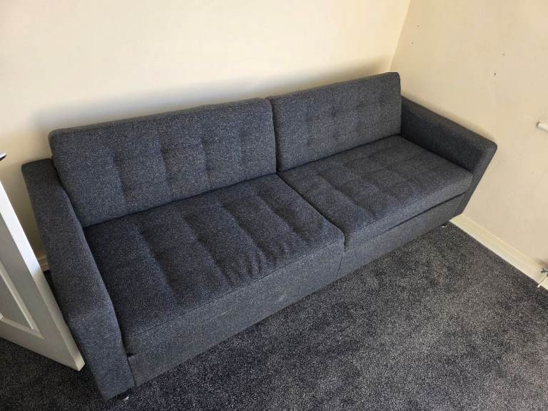 Hi ,I have to sell very good, comfortable IKEA sofa bed/3 siter .Very good condition. Model name : Landskrona colour name : Gunnared dark grey/metal