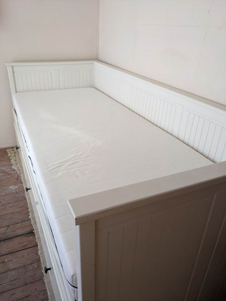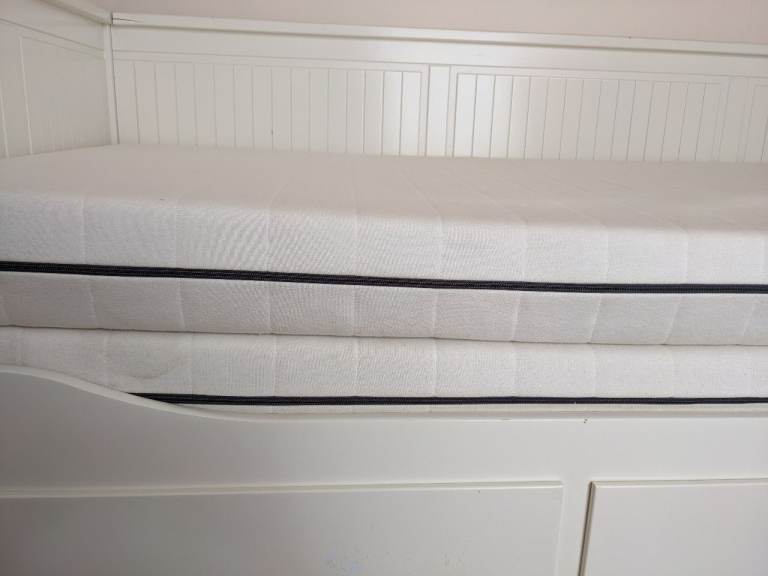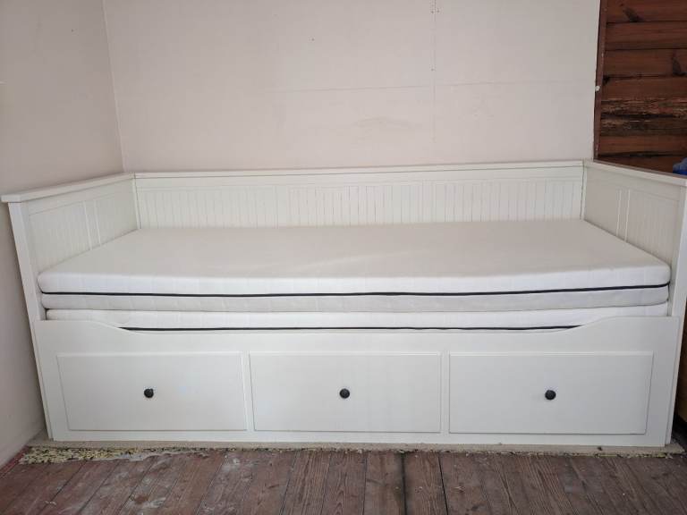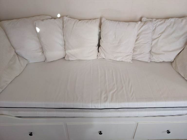 An IKEA Hemnes Daybed with 2 Afjall mattresses and all cream cushions freshly washed included (you don't have to take the cushions if you don't want them). Never slept on, just used as a sofa and no longer needed due to changing the purpose of the room. A sheet was always kept on top on the mattresses.