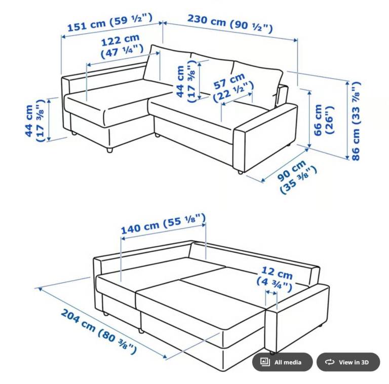 IKEA sofa bed with storage in good condition. It can be changed to both sides (right,left). The measurements are in the pic. Possible delivery.