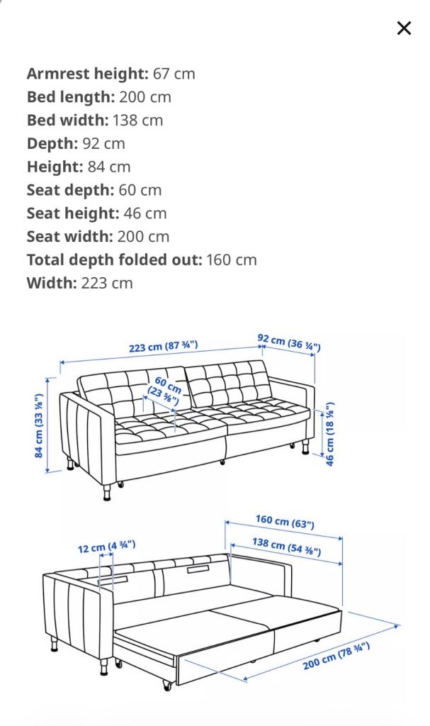 Nearly new, excellent condition ikea leather double sofa bed. Collection only. Please see photos for dimensions