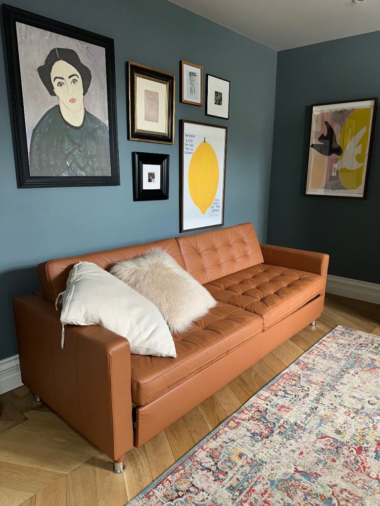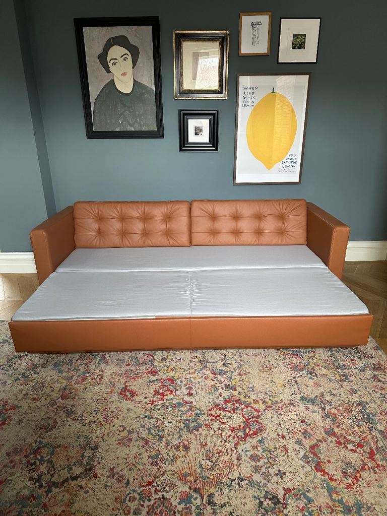 Posting for 11+ yearsIkea tan leather sofa bed