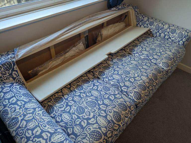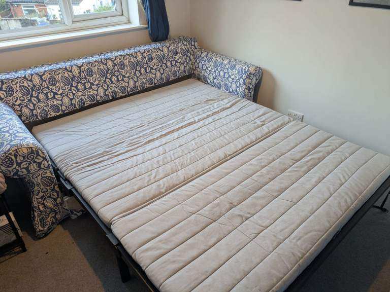 Fantastic IKEA sofa bed with in-built storage. Also includes a mattress protector (not pictured). We've owned this for about six years and it gets used 4-5 times a year with no problems. The sofa has removable, washable covers (or replacements can be bought).