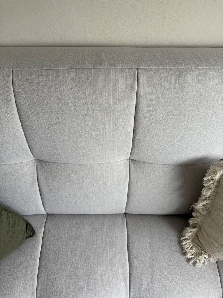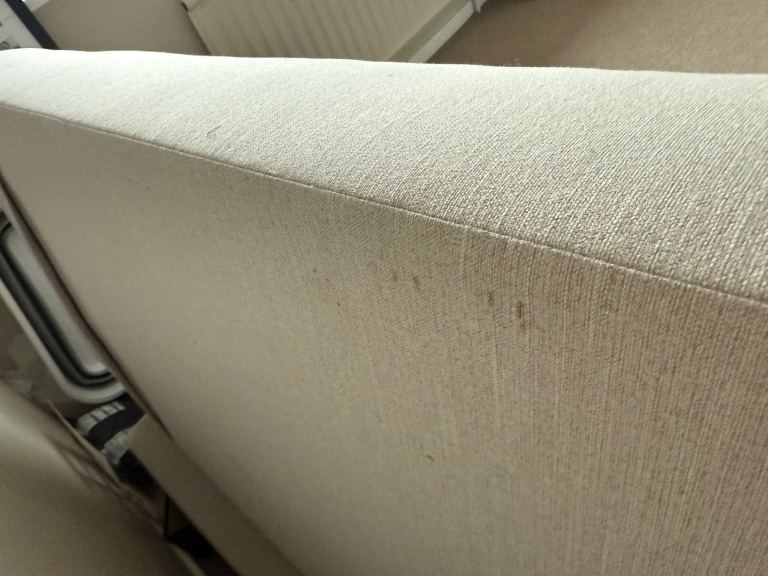 Slight scuff in the fabric on the back of the sofa from original delivery. Shown in pics, not visable from front and does not impair use.