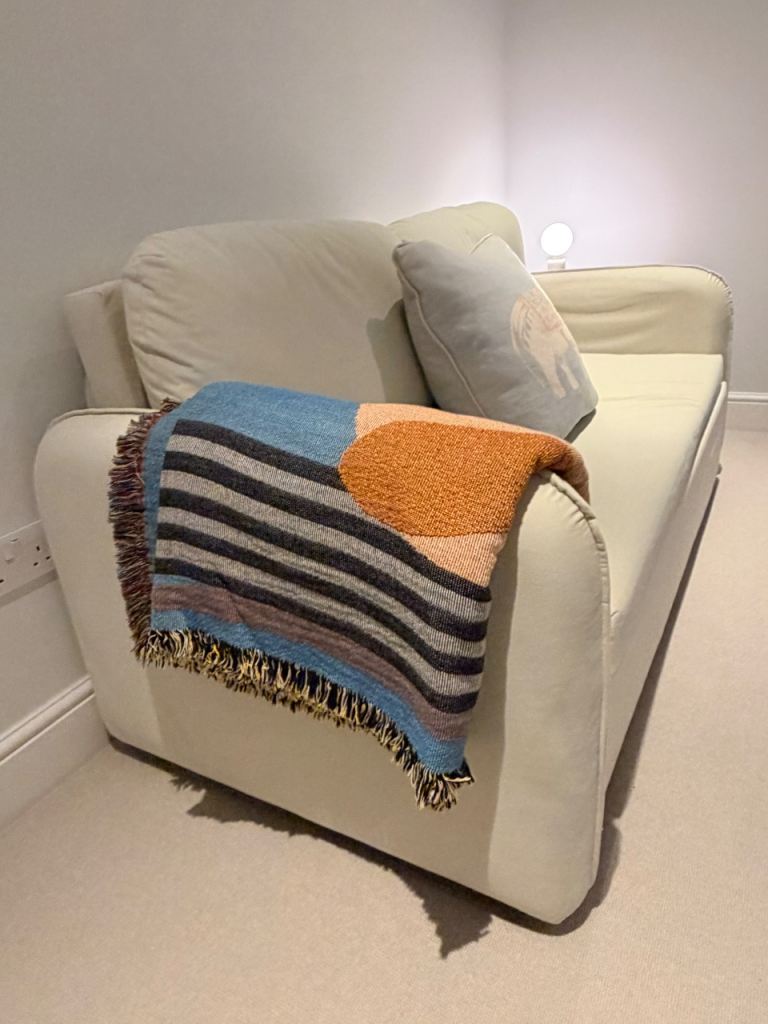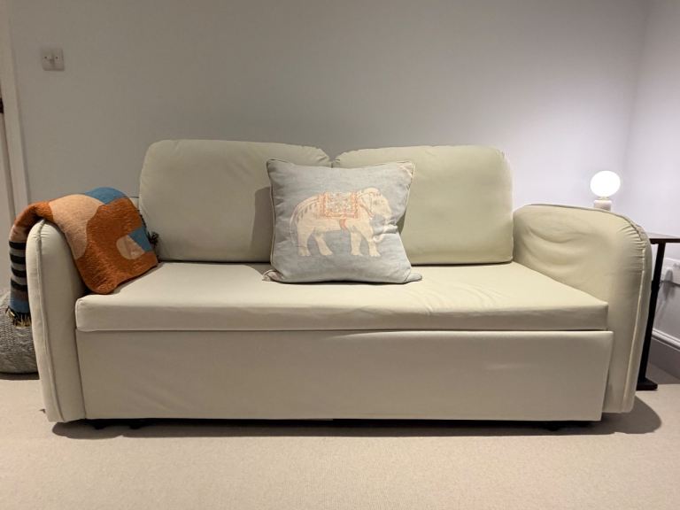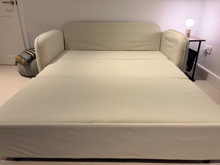 Selling our sofa bed as we make space to repurpose the room. It functions well as both a sofa and easily converts to a (nearly) king sized bed in seconds. Bed dimensions are 185cm x 150cm.