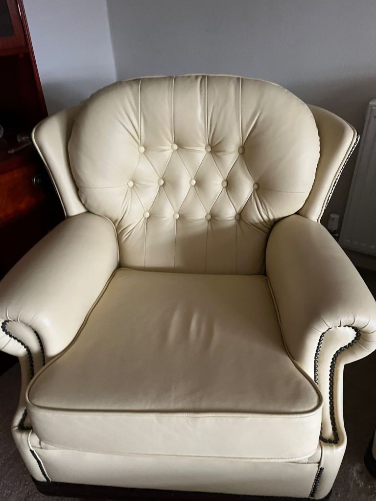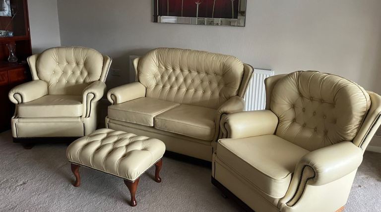 All leather sofa 2 chairs and foot stool