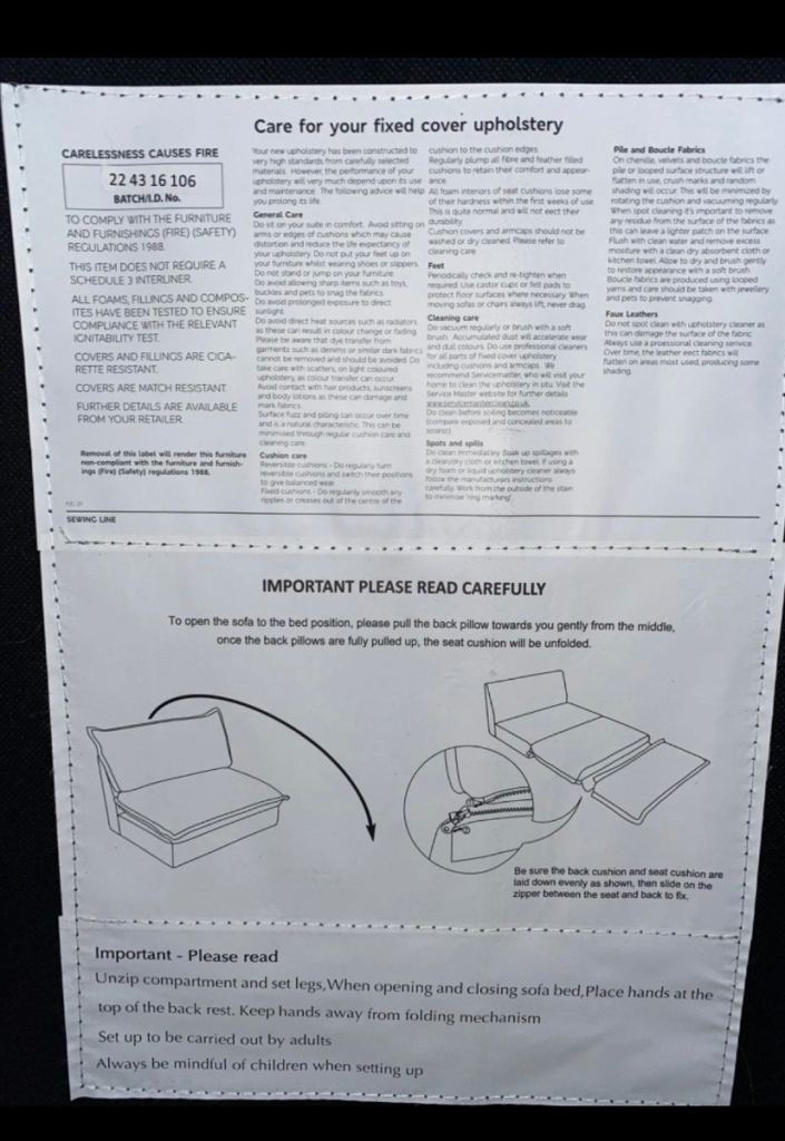 This sofa bed simply folds, or flops out making it minimal effort with no mechanisms or bars to worry about. A zip secures the seating panel when in the seating position.