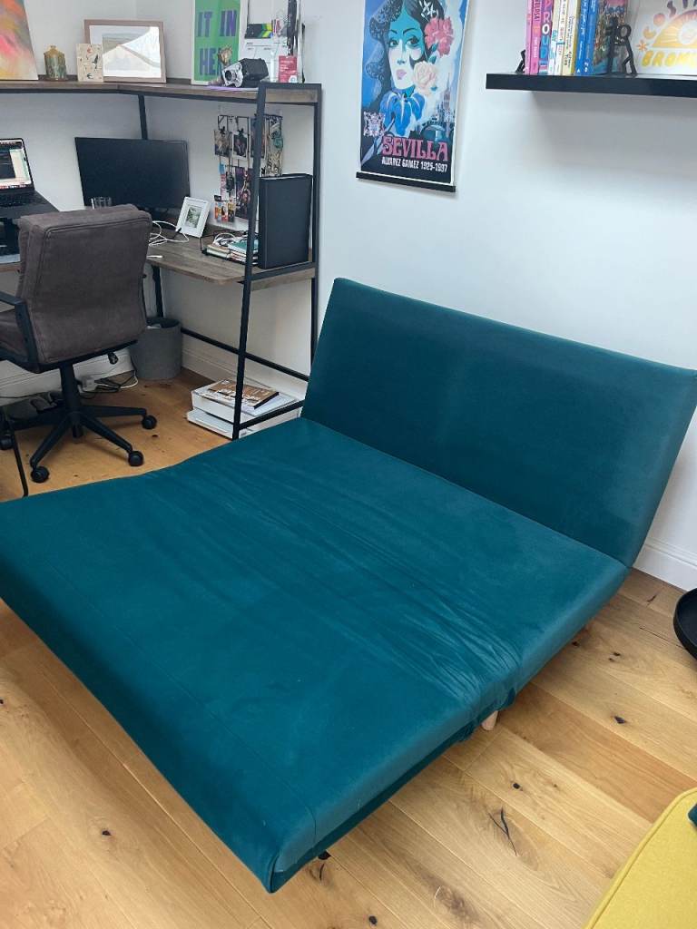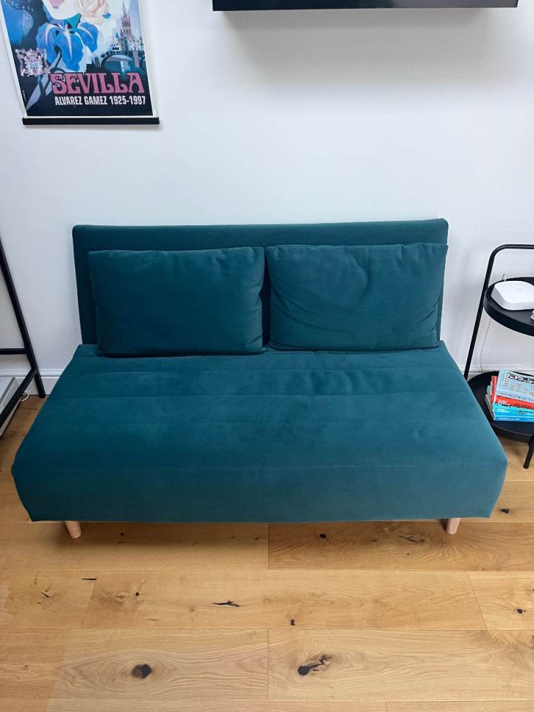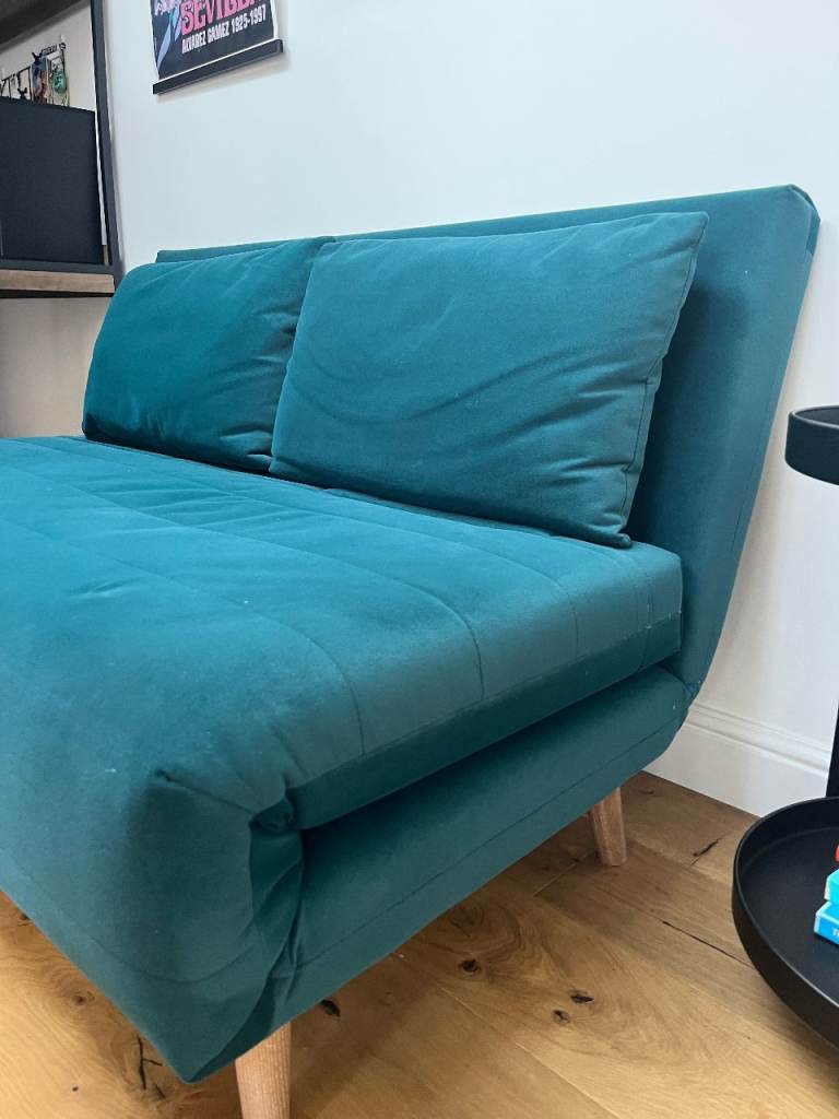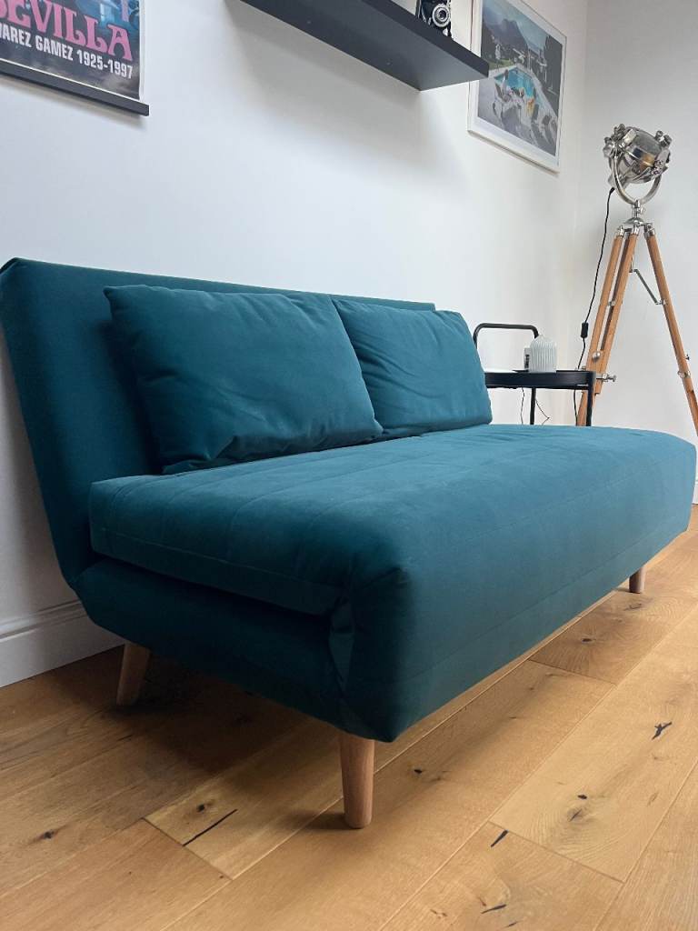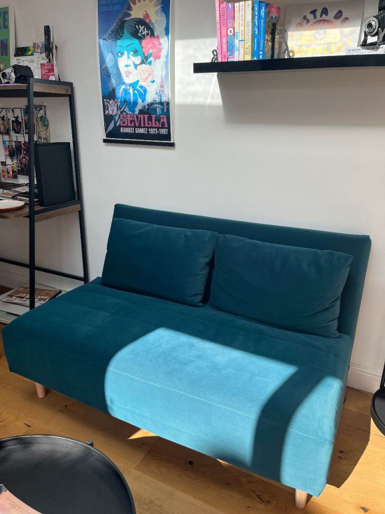 Posting for 10+ yearsM&S Teal Pull out 2 seater sofa bed