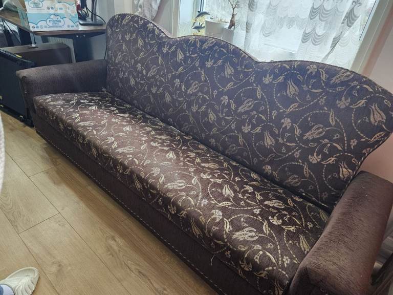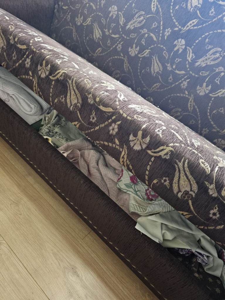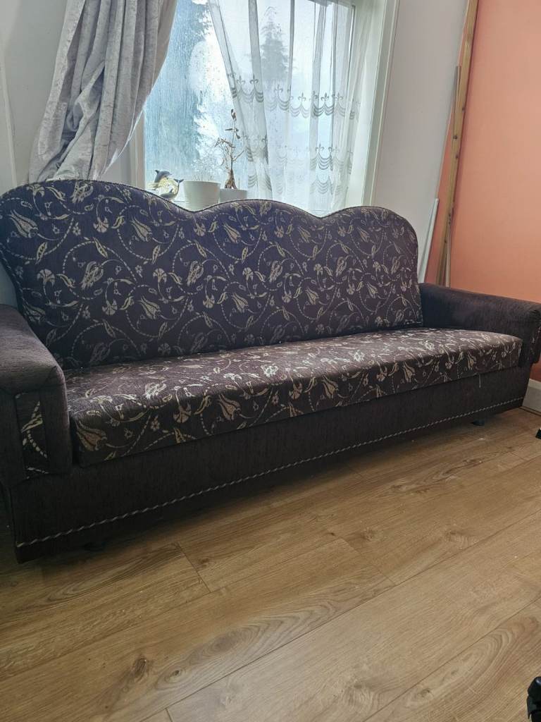 Ottoman sofa bed fairly used I have 2 of these, they have mostly been used to put stuff underneath completely pulls out as a bed too, armrest on the left side is slightly damaged will try and make sure if we can fix it. Price negotiable. Please bring a big car or van pick up/collection only.