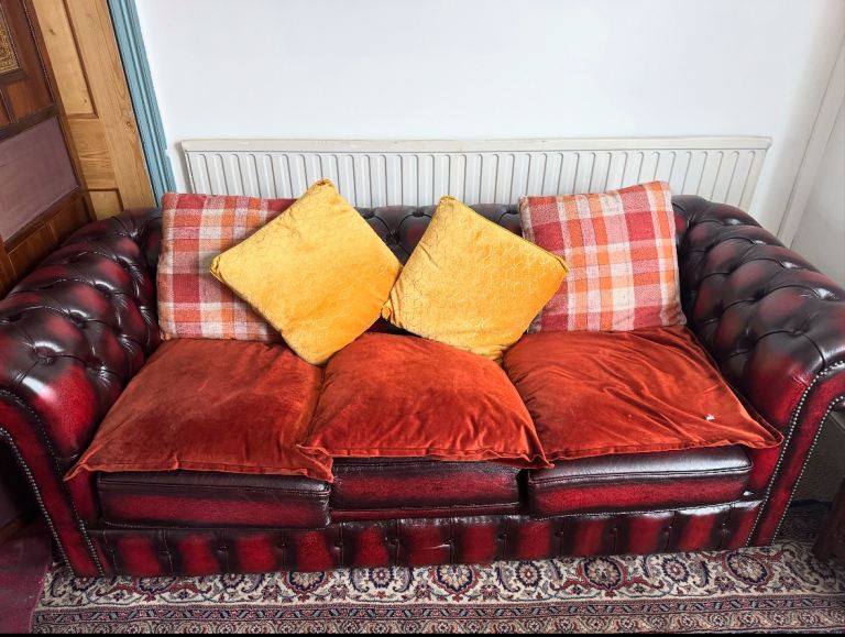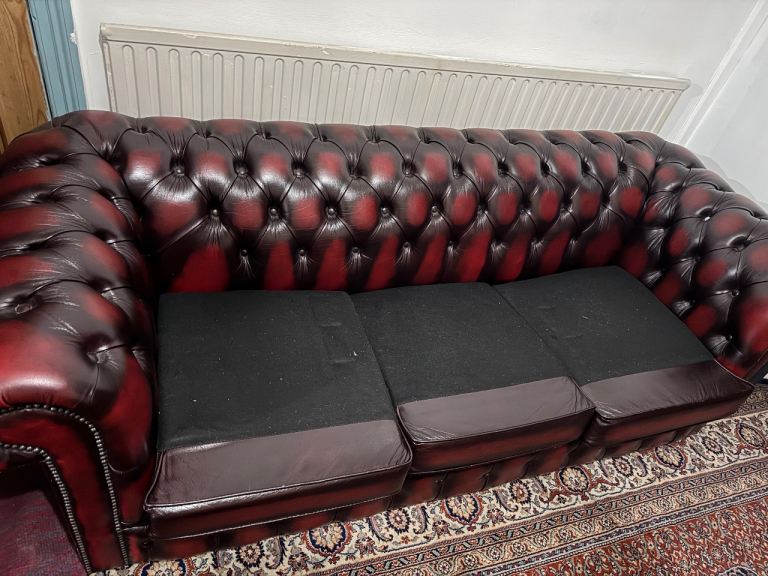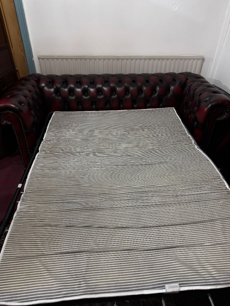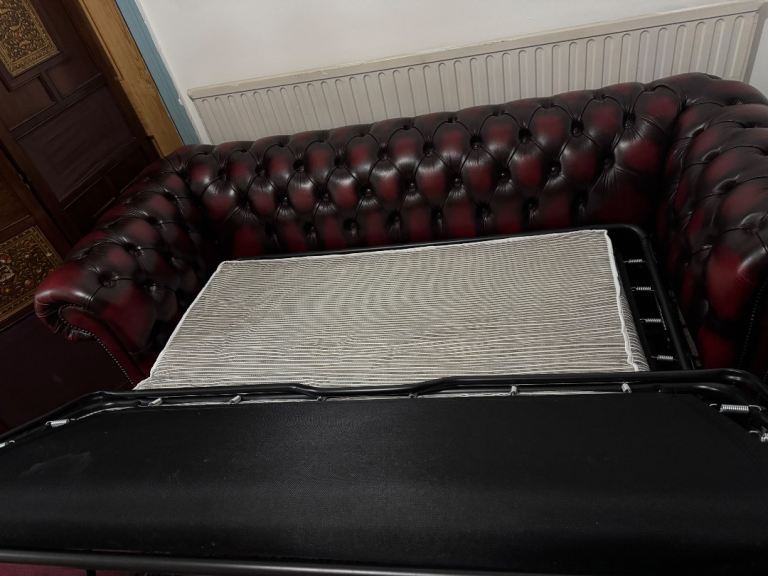 Ox-blood Red Leather Chesterfield three seater Sofa bed