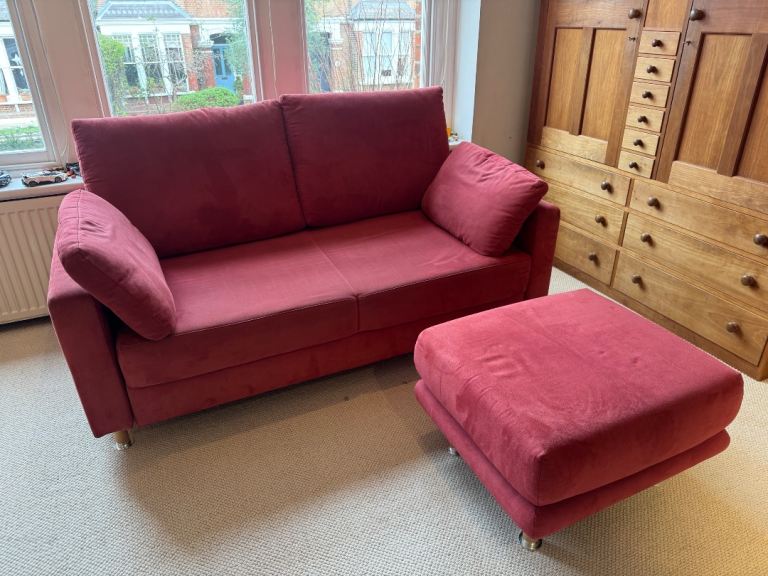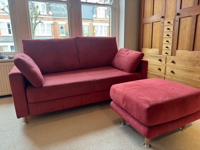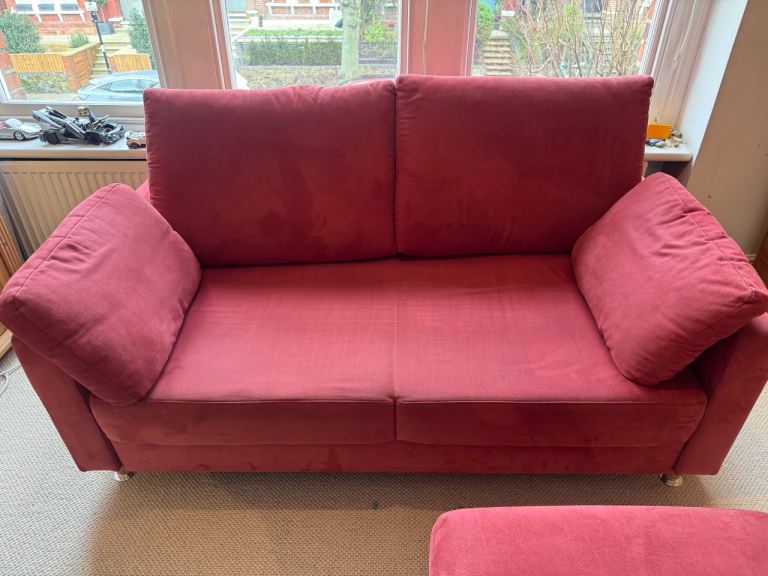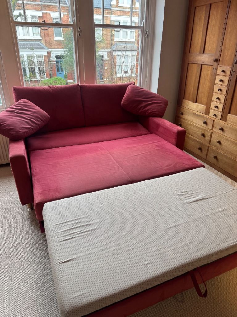 This is a two-seater that can be converted into a bed. It is in good condition, except for the extension mechanism, which is slightly twisted (this could be fixed with a bit of dyi).