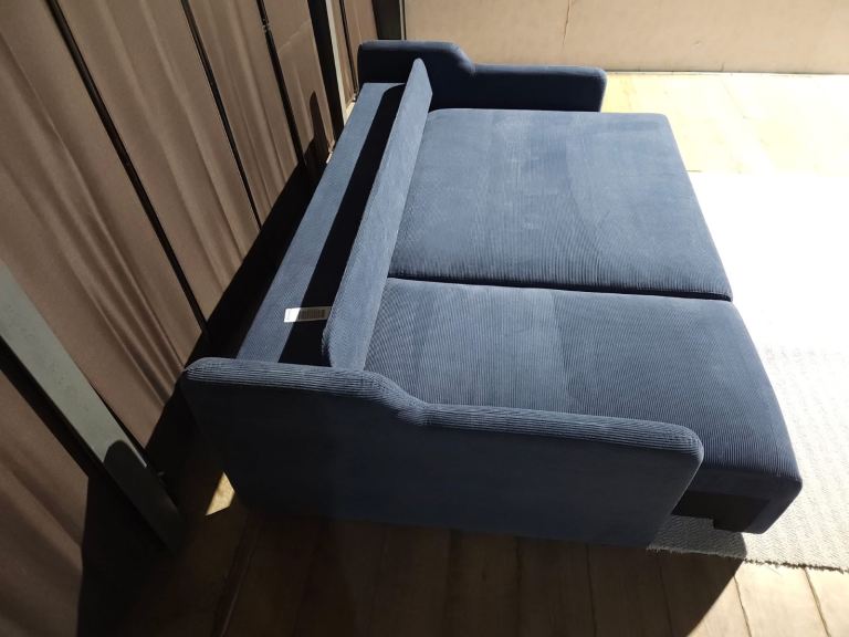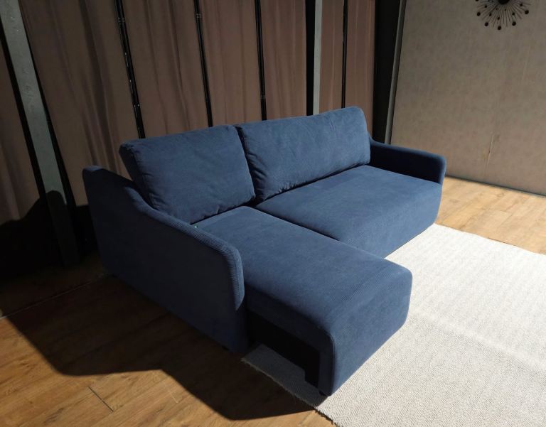 New Unused Reversible Fabric Corner Sofa Bed - Blue.