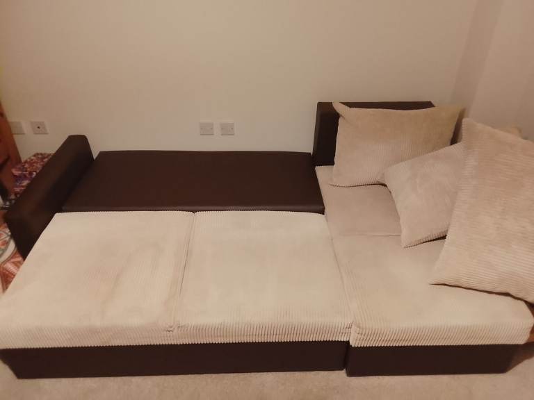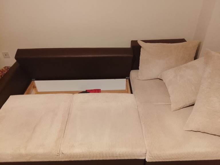 Posting for under a monthSmall corner corduroy sofa bed with storage