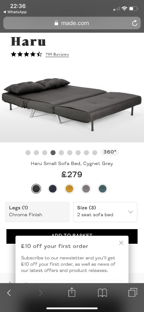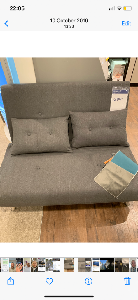 £279 sofa bed bought for in-laws coming to stay from Crete in the spare bedroom, year and a half later the room was for babies . Slept on 4 times, brand new really. I’ve been told it was very comfy as a sofa and a bed.