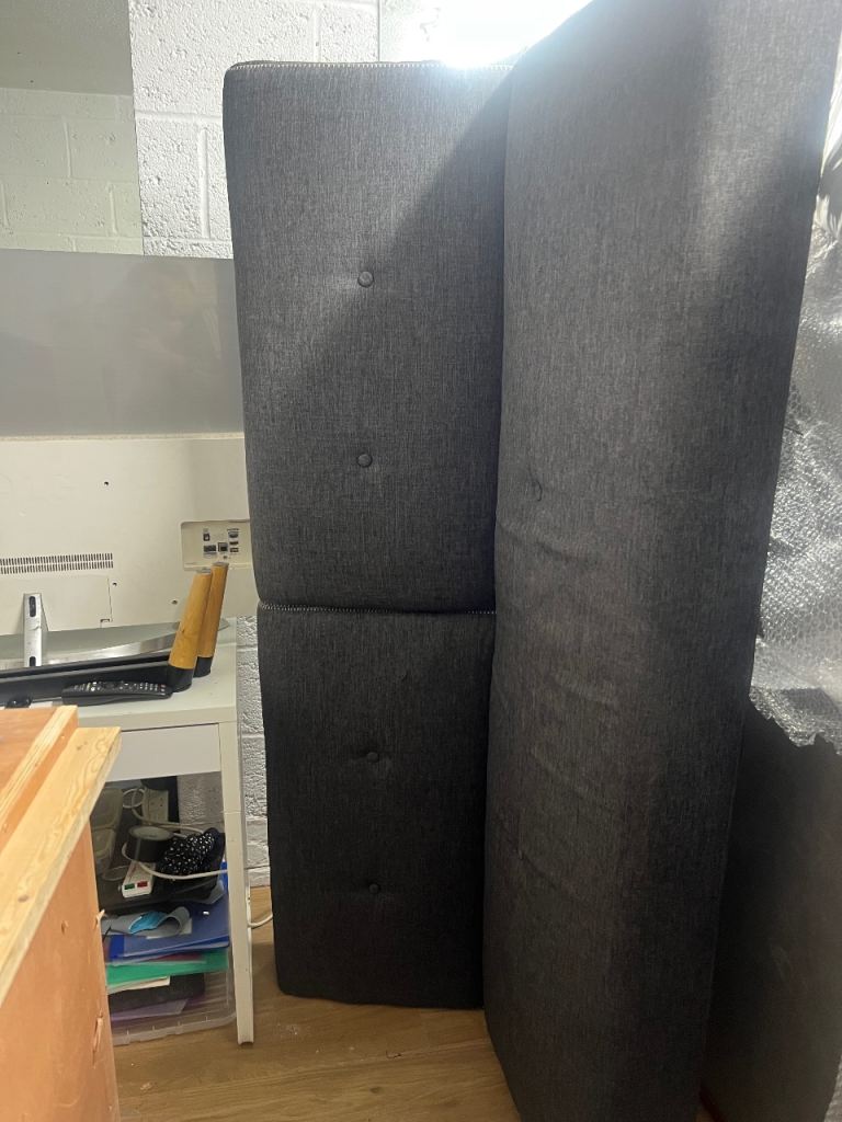 Nice sofa bed. The back rests drop down to make a small double. Comfy, small cut on one of the cushions.