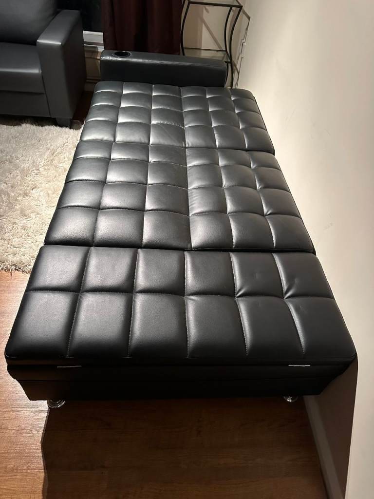 I am selling my sofa-bed, its black faux Leather. its good as new only had for 3 month, but not used much. as i was living away.