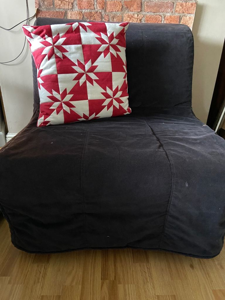 Sofa chair single pull out bed ikea black cover white mattress in great condition. Ideal for guests, spare room, grandchildren