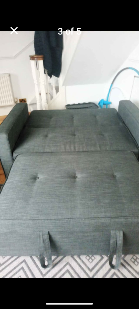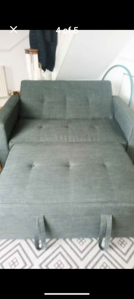 Excellent condition sofa bed. Brought but hardly used. Bottom pulls out so can sit with legs up. Back has 2 adjustable positions.