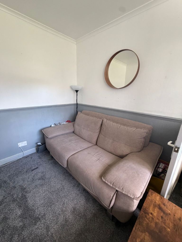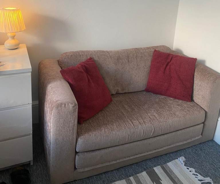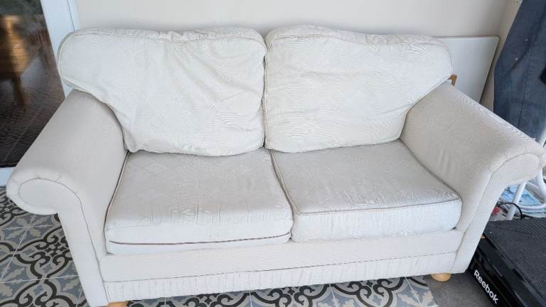 Lovely white fabric sofa bed, perfect for guests or smaller spaces.