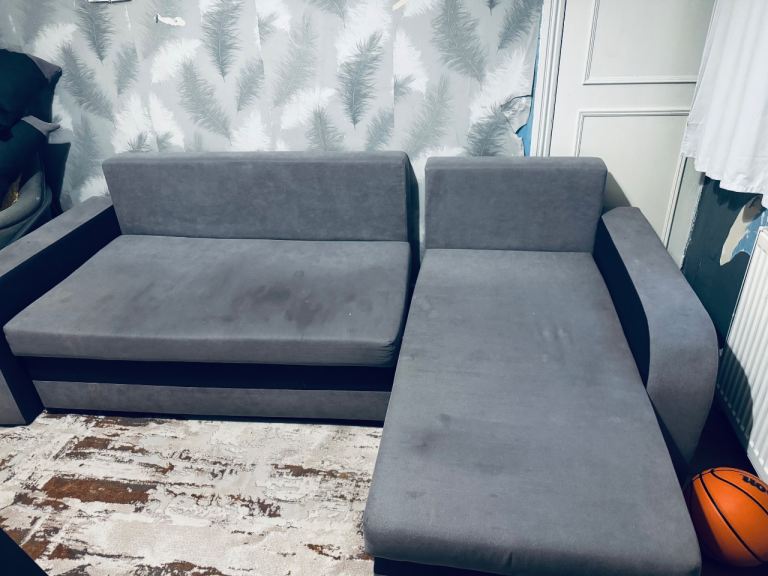 Grey jumbo cord bed settee. 2 years old. Must be uplifted from Huntly