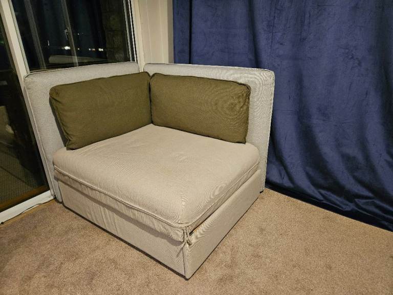 In fairly good condition generally. Some minor wear and tear. Cover and cushion covers are removable and can be dry-cleaned. Looking for a good home.