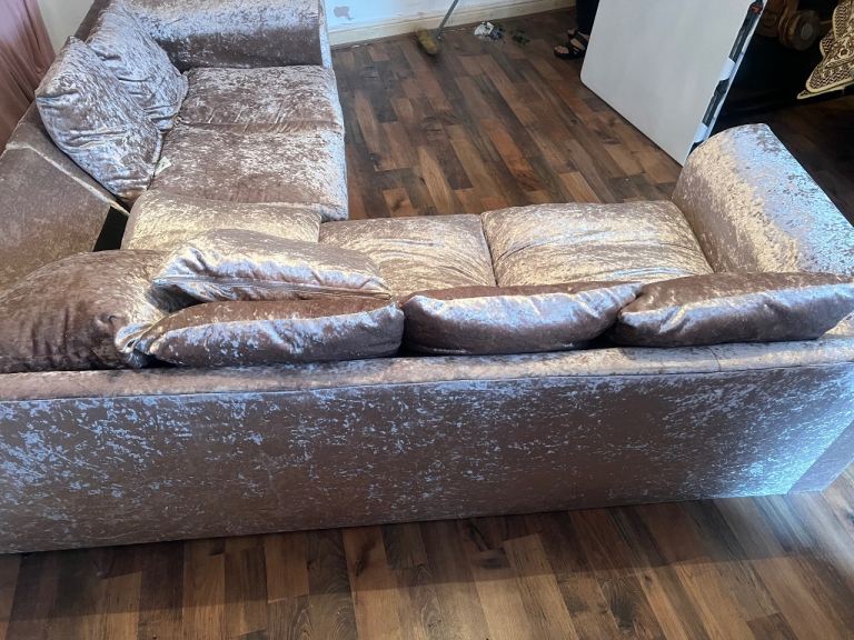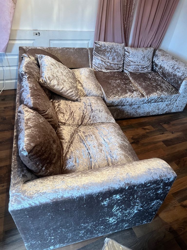 A corner velvet sofa, very new condition hardly used, selling due to lack of space, local pick up from Coventry.