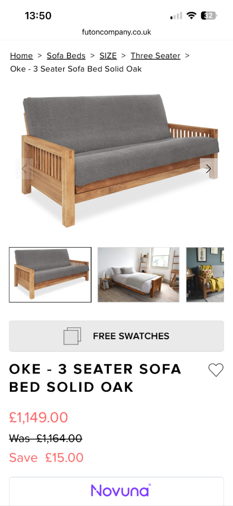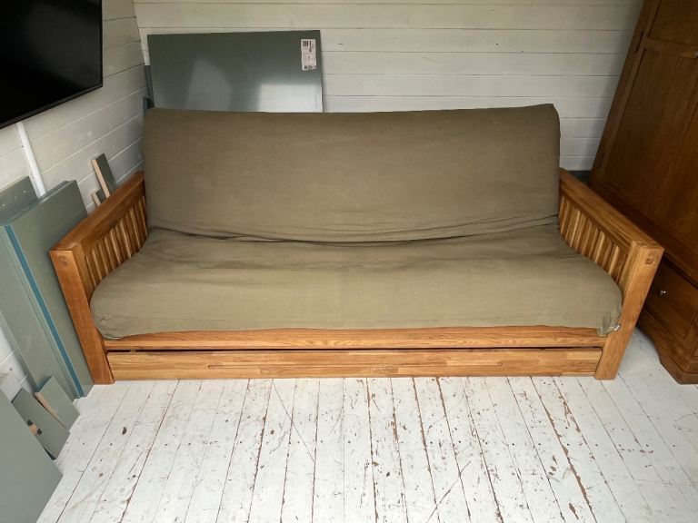 Solid oak 3 seater sofa bed from Futon Company