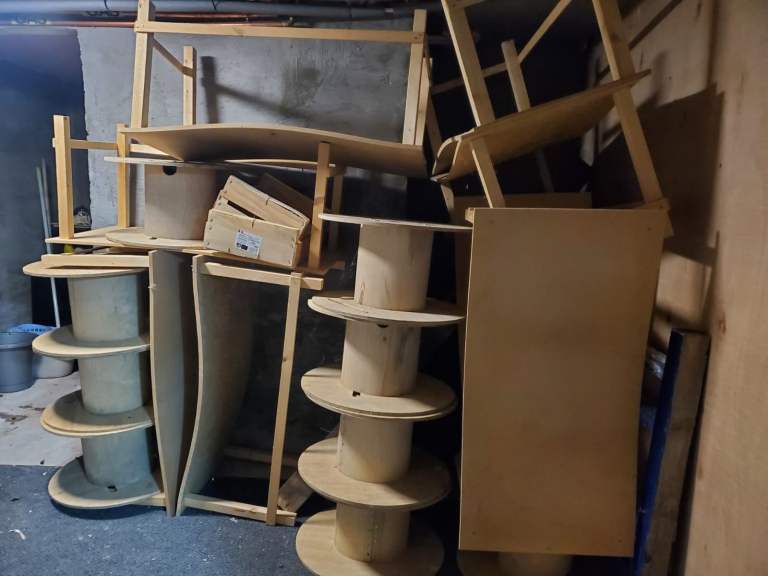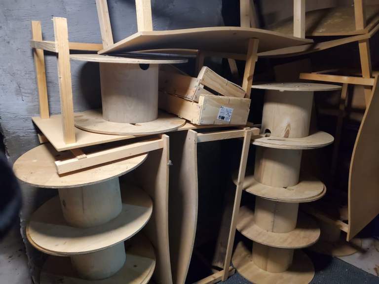 I have a lot of 40cm diameter wooden cores ideal for fire pits, as well as many mdf sheets with wooden legs that could be easily sawn off to pack, again for wood burning/repurposing. I also have a comfortable and clean sofa that turns into a sofa bed that has been made bespoke by several cats which anyone who can make use of is welcome to have also.