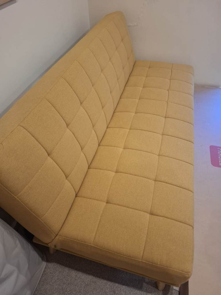 Yellow clic-clac easy pull-out sofa bed. Excellent condition, folds out easily. Legs are removable in order to disassemble. Based near Clapham Junction with access to car park.