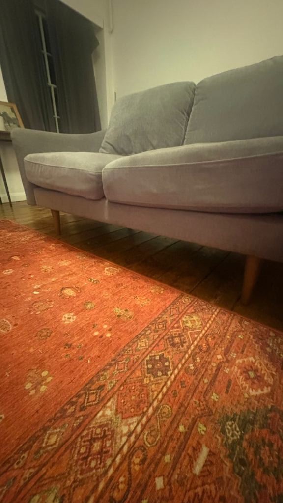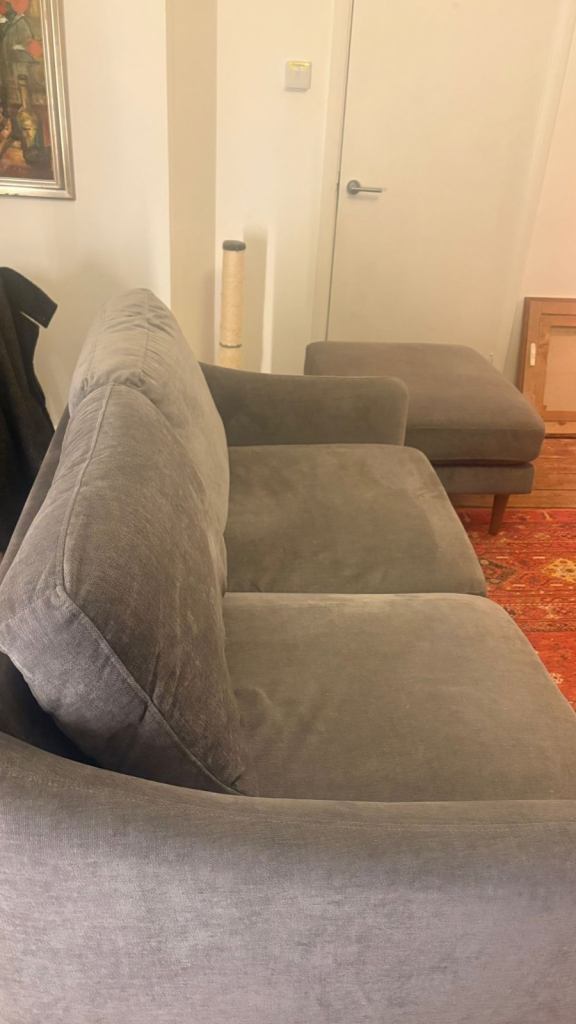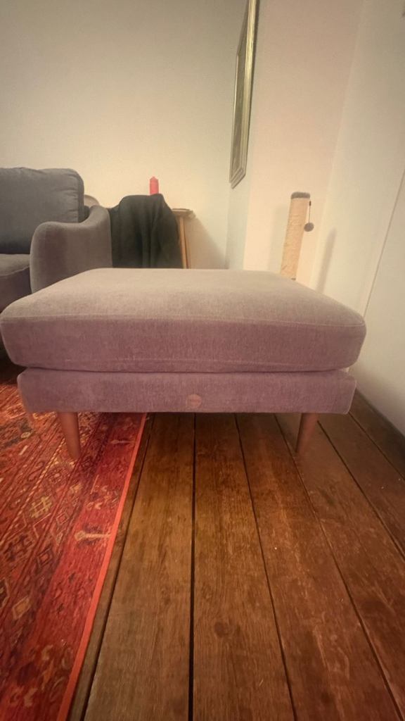 Comfortable and stylish Snug sofa with matching footstool, bought around 6 years ago for £1100. It’s a compact, modern sofa that works well in all living rooms, flats, or as a secondary seating area.