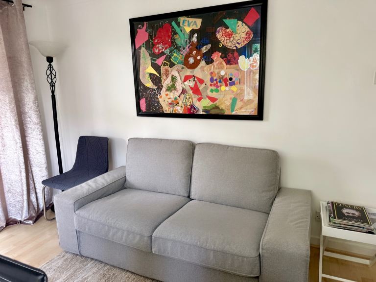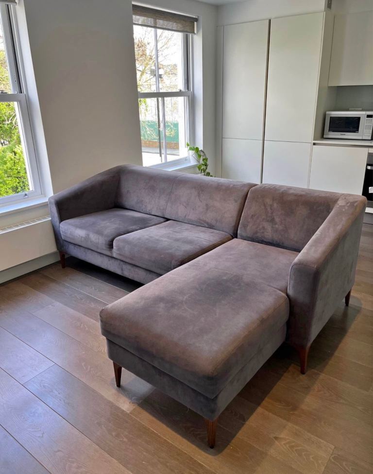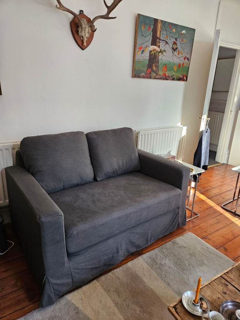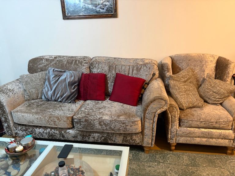The sofa is in really good condition overall with only 1–2 very minor age-related marks (barely noticeable). Includes the two matching cushions shown in the photos.