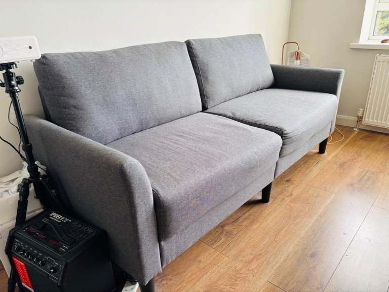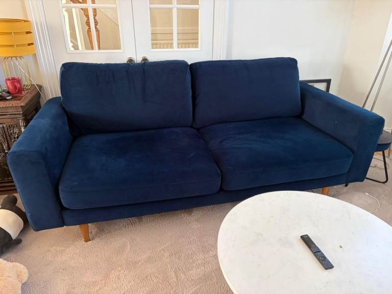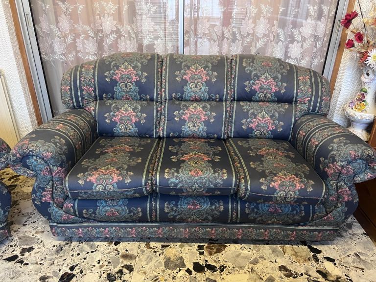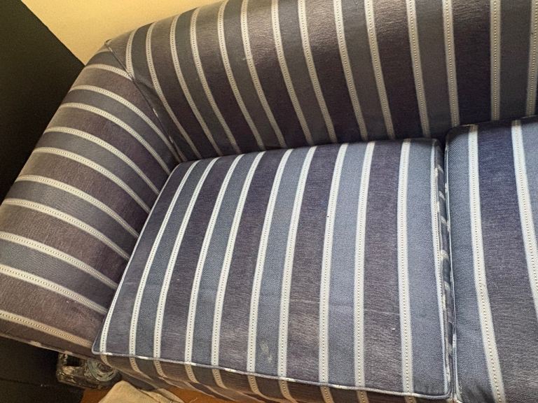 This sofa has been in a guest room and has barely been sat on for years, so the cushions and frame remain very firm and supportive. Due to the room's positioning, there is some slight sun fading/damage to the fabric (primarily on the, tops of the back cushions]), which is reflected in the price.